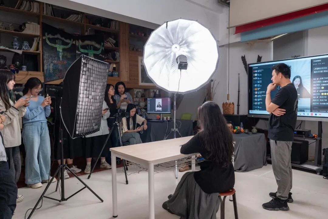 在直播间全流程解析环节,课程紧扣自媒体时代趋势,模拟商业拍摄环境,帮助学生掌握策划、团队协作等职业技能。陈耕教授强调:“摄影教育必须与行业需求同步,培养学生快速适应新技术、新媒介的能力,同时保持创作的自主性与艺术性。”