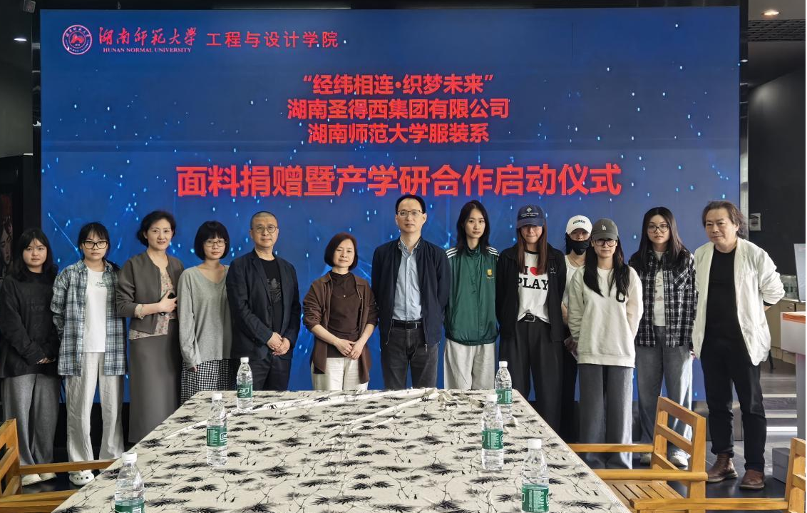 (通讯员 汪自欢)4月9日上午,“经纬相连·织梦未来”湖南圣得西集团有限公司与湖南师范大学服装系面料捐赠暨产学研合作启动仪式在湖南师范大学工程与设计学院举行。工程与设计学院副院长彭可教授、服装系系主任罗仕红副教授、实验中心主任邓美珍教授、陈耕教授及湖南圣得西集团有限公司技术部负责人许俊丽共同出席活动。